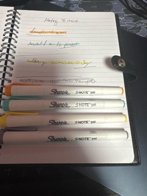 Hello! Thank you for sharing your experience with the Sharpie 16ct S-Note Dual Tip Creative Highlighters. We’re sorry to hear that the markers bled through your pages—we know how frustrating that can be when working on notes, planners, or creative projects. ✨ A few tips that may help reduce bleed-through: 1. Try using a thicker paper (like 80gsm or higher), as standard notebook paper can be too thin for dual-tip markers. 2. Place a scrap sheet of paper underneath to protect the next page. 3. Use the fine tip side for lighter coverage if working on thin pages. If you’re looking for alternatives, the Sharpie Gel Highlighters are a great option since they’re designed specifically to avoid bleed-through, while still providing vibrant color. We appreciate your feedback—it helps us improve products and guide others in choosing the best tool for their needs. Sharpie Consumer Care Team