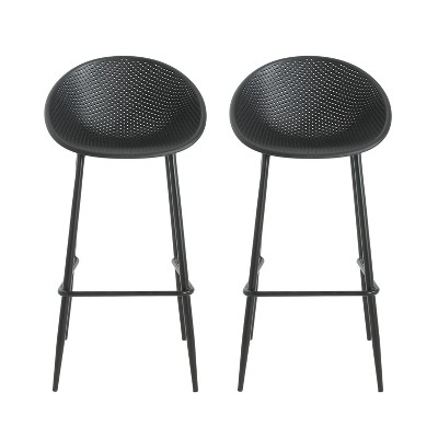 DescriptionThe Armen Living Shasta outdoor patio barstools - set of 2 are a terrific choice for any contemporary patio bar and seating arrangement. This beautiful black powder coated barstool features a durable steel frame, allowing for easy arrangement without compromising on dependability. The Shasta fishbone weaved seat and back provides a great deal of comfort and support. The Shasta is the perfect outdoor comfort product. The Shasta is available in your choice of black, gray, brick red, tangerine and wasabi and 26†or 30†height variations all with a beautiful and modern black steel frame.