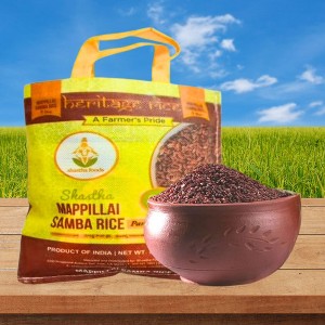 Shastha Mappilai Samba Rice is a traditional red rice variety cherished for its natural strength-boosting properties and rich nutritional profile. Known as “Bridegroom’s Rice,” it was historically consumed to enhance stamina and endurance before physical challenges or ceremonies. The grains have a distinct reddish-brown color due to their high iron and antioxidant content and are unpolished to preserve the natural bran layer and nutrients.