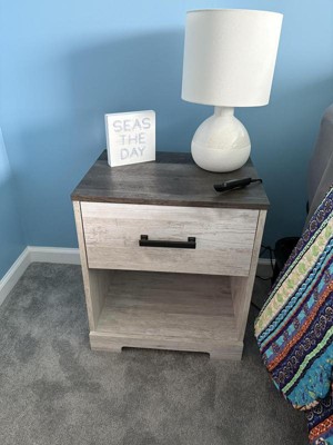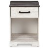 Give provincial a new meaning with the chic look of this nightstand. A two-tone finish keeps this piece light and fresh, while the warm pewter-tone hardware adds an industrial touch. The open cubby provides display space or accommodates a storage bin to add a delightfully homespun charm to your space. Signature Design by Ashley is a registered trademark of Ashley Furniture Industries, Inc..
