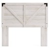 Give provincial a new meaning with the chic look of this full panel headboard. The white wash distressed finish keeps this piece light and fresh while the warm pewter-tone hardware adds an industrial touch. The panel headboard with crossbuck detail adds a delightfully homespun charm to your space. Signature Design by Ashley is a registered trademark of Ashley Furniture Industries, Inc.