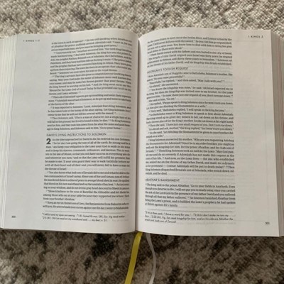 This bible is beautiful. I had originally bought another, but couldn’t help myself from buying this one as well with all the amazing study materials, devotionals, etc that it includes. This bible is a bit big to carry around, but has plenty of space for notes, tons of resources, and is just all around beautiful. Definitely recommend to those who want to dive deeper into The Word.