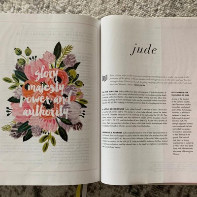 An aesthetically pleasing, beautifully presented Bible! It has book intros providing cultural contexts with reading plans and devotional outlines, along with timelines and relevant background information. The key verses for each chapter are beautiful and reflect the themes of each book. It also includes some commentary that allows for a deeper understanding, always pointing to the complete gift of Scripture.