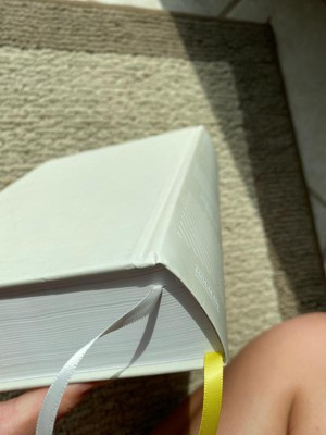 Such a beautiful color but not as grey as expected. Did come a little dirty but washed of easily with wet paper towel. Very soft cover! Inside is lots of goodies! This bible is packed with devotionals, reading plands, timelines, maps, and more! Love the blank margins for journaling. I love this bible so much and definately recomend it. Very clean and aesthetic.