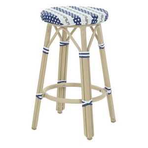 Create your gorgeous tropical oasis in the backyard with this beautifully constructed set of counter-height stools. A navy tone frame features a footrest for hours of comfort while the resin inspired wicker adds character. The sturdy aluminum frame and resin-wicker are water and weather-resistant for easy outdoor maintenance.