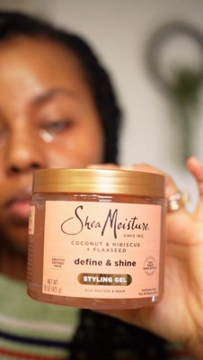 - STYLE THAT'S HERE TO STAY: SheaMoisture® Coconut & Hibiscus Define & Shine Styling Gel + Flaxseed hydrates & holds your style from morning to night. Upgrade to shiny, defined curls without the flakes.