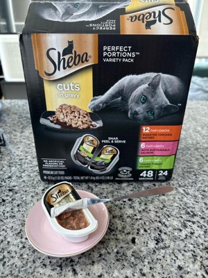 Sheba Perfect Portions Cuts In Gravy Sustainable Tuna,Salmon White Fish & Tuna Premium Wet Cat Food All Stages - 2.6oz/24ct Variety Pack