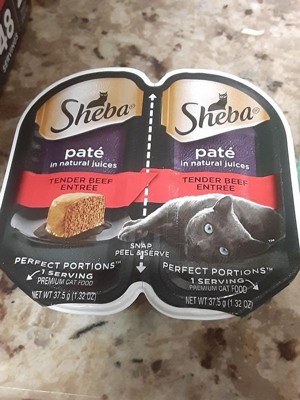 Sheba Beef Pâté: smooth texture, rich scent, quality ingredients, great value, easy packaging—my cat loves it! My Scotty fold goes absolutely wild for it.