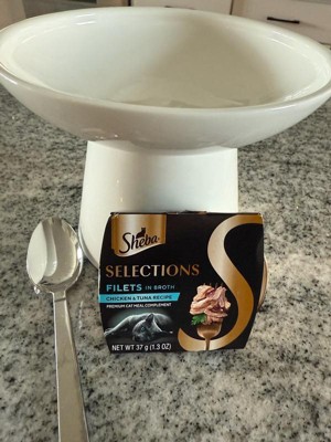 [This review was collected as part of a promotion.] My cats love it! Sheba Filets in Broth Chicken and Tuna Recipe has a good balance of gravy and meat bits that keeps them coming back for more. The tops peel off easily, which makes feeding time quick and mess-free. I also really appreciate that it’s made without artificial flavors, just simple, tasty ingredients my cats enjoy.
