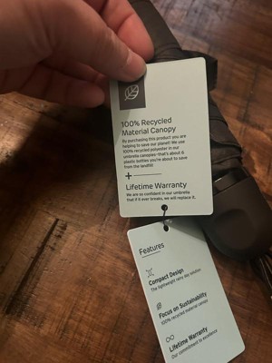 A: Looks like you bought one of our manual opening umbrellas. To open, slide handle down, then untie the "tie strap" (the velcro) strip, and simply push up on that round black piece at the base of the shaft. If you'd prefer an umbrella that opens automatically at the push of a button, feel free to return yours to Target or to us and it will be replaced for you. Thank you! John from ShedRain