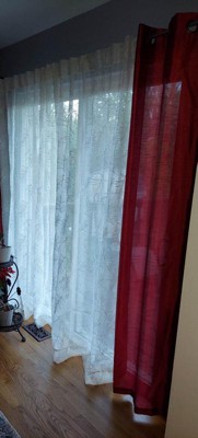 [This review was collected as part of a promotion.] I am once again smitten by my friend window! The Ricardo® Sheer Leaf Rod Pocket w/Back Tabs Patio Panel 104x84 White is stunning! It provides the perfect amount of S & P (sheerness and privacy). The beautiful leaf design fits in well with any of my draperies. But this beautiful curtain deserve to be right in the front window! I can see through them anytime of the day or night. Allows enough privacy with that only barely can a figure be made out from the street. The leaf design gives a beautiful fresh feeling to the room. Where's my car keys, I need to go out and buy some more of these! Every room in my house deserves to be adorned with the Ricardo® Sheer line of panel curtains.