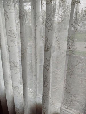 Effortlessly beautiful design and custom-like details! This luxurious woven curtain with embroidered leaf design will deliver instant drama and appeal to any space. Available in the most neutral colors. These premium quality curtains hang beautifully and add calmness to any room. These panels are unlined and semi sheer allowing just the right amount of light to filter through. These drapes have the most versatile header, a rod pocket with back tabs for a dramatic pleated look. Each panel is extra wide to cover wider windows, patio slider and/or French doors. Panel is 104" wide by 84" length. For easy care, machine wash cold and line dry. WOVEN TEXTURED LINEN-LIKE FABRIC: This loosely woven textured fabric is both casual and elegant, creating a warm look and feel in any space. The rich brushed fabric lining creates the perfect amount of light filtration maintaining some privacy, while allowing the curtain to hang gracefully and beautifully in any room.