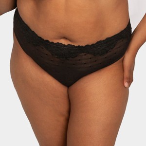 Its giving main character energy with a perfect mix of comfy and no panty lines! Ultra smooth dotted lace with a flat finish for comfort and easy wear under clothes. Lightweight and breathable, these gorgeous panties move with you throughout the day. A classic thong style designed specifically with plus size bodies in mind. No pinching or digging it'll feel second skin. Have fun with sexy plus size panty options for everyday wear or date night. Pair with our Sheer Whisper bras for an unforgettable sexy set, or with no bra at all. Feel your best underneath with Curvy Couture.
