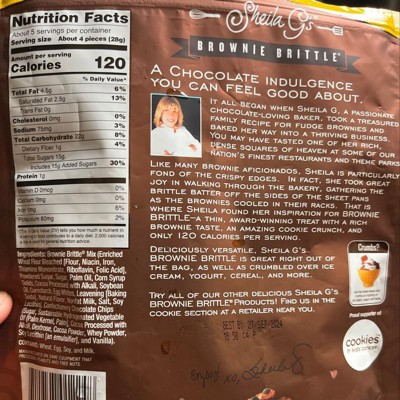 We've got the EDGE on brownies. Just like the crispy edge of a gourmet brownie, Sheila G’s multiple award-winning Brownie Brittle satisfies your chocolate desires with fewer calories than other sweet snacks. Deliciously versatile, Sheila G’s Brownie Brittle is great right out of the bag, as well as crumbled over ice cream, yogurt and cereal. A rich brownie taste with an amazing cookie crunch, and only 120 calories per serving, you can indulge without all the guilt!