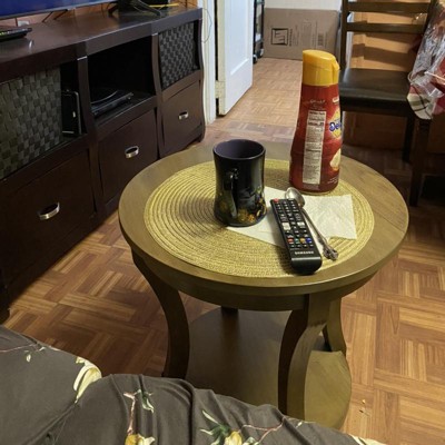 A: This round accent table is perfect for use in living rooms or studies.