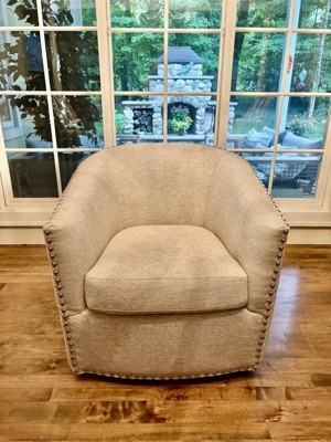 We ordered this chair as an accent piece and extra seating for our living room in the house we just built. FAR exceeded our expectations! Came assembled (worth every dime just for that), easy to get out of box, and unwrap. Works great and is very comfortable. The swivel moves with no issue. Wonderful value!!