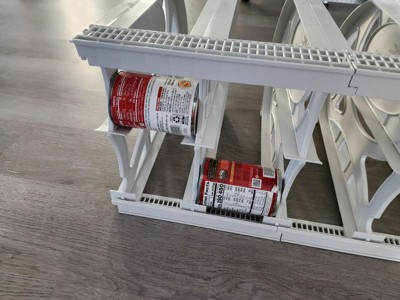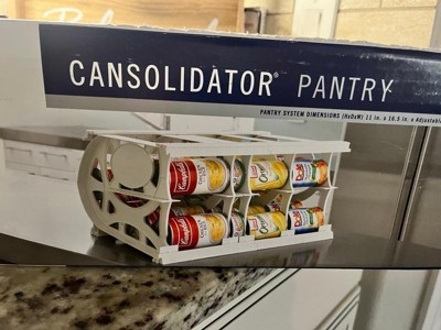 [This review was collected as part of a promotion.] Organize your pantry in style with this Thrive Life / Shelf Reliance Pantry Organizer Rack. With the ability to hold up to 40 cans, this adjustable plastic rack is perfect for any kitchen. The white color and sleek design make it a great addition to any decor. The CANSOLIDATOR features one tier and adjustable features, allowing for customization to fit your specific needs. Measuring in at see description for item height and see description for item length and item width, this pantry organizer rack is compact and efficient. Don't miss out on the opportunity to declutter and simplify your life with this new in open box Thrive Life / Shelf Reliance Pantry Organizer Rack.
