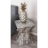 - •Contemporary brown side table features an hourglass shape with vertical mosaic of mussel shells on the exterior for a stunning statement piece
