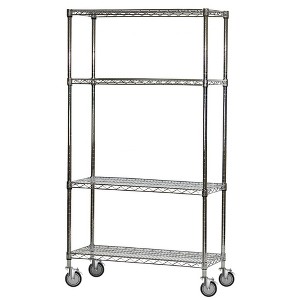 This mobile shelving can be used in a variety of applications from business offices to residential kitchens. Provides easy access to contents from all sides Open-wire design maximizes airflow and light penetration Each shelf supports up to 300 lbs, evenly distributed Shelves adjust in 1" increments to efficiently use space Casters allow easy maneuvering around establishments Intended for indoor use, dry storage only NSF approvedTo securely set or quickly remove shelves, tap their corners with a rubber mallet. View our Wire Shelving Size Guide to see actual outer and inner dimensions.