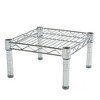 When you need to keep an item at a convenient height and off the ground, this chrome wire shelving is your best bet. Great for areas with limited vertical space such as cabinets and countertops. This product cannot be stacked. For taller shelving, please see our 3-shelf, 4-shelf, and 5-shelf units. Constructed of chrome-plated steel. Open design reduces dust accumulation. Shelf adjusts in 1" intervals on 6"h posts. Holds up to 800 lbs, evenly distributed. Made for indoor use, dry storage only. NSF approved. To securely set and easily release the shelf, tap its corners with a rubber mallet.