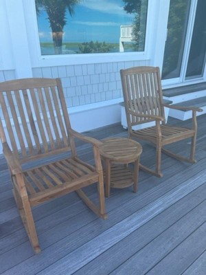 We bought two sets of these rockers and the table. We have lots of outdoor seating space and needed the seating, and we wanted teak. The rockers look great and are just as they were advertised. We especially love the width.