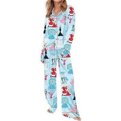 SHESHOW Satin Pajamas Set for Women Set Long Sleeve Button Down Pjs Sets 2 Piece Loungewear Animal Sleepwear