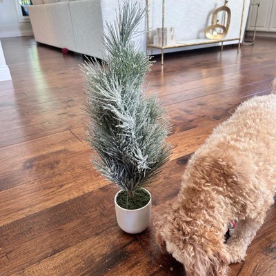 A: The tree is made from plastic faux floral material, designed to mimic real pine.