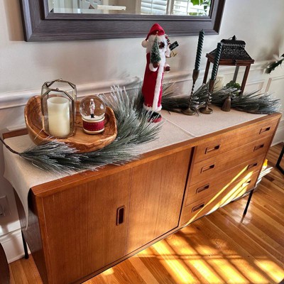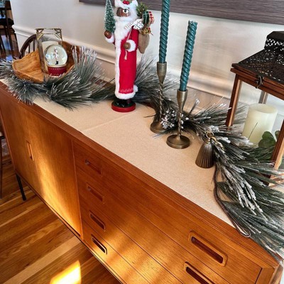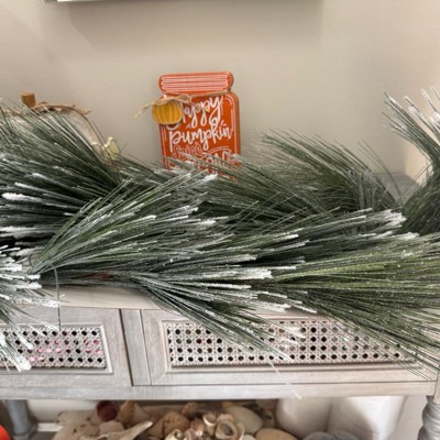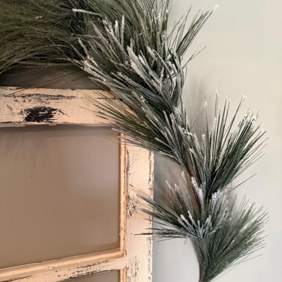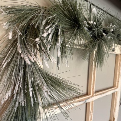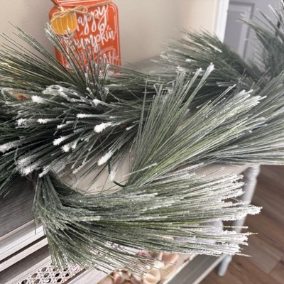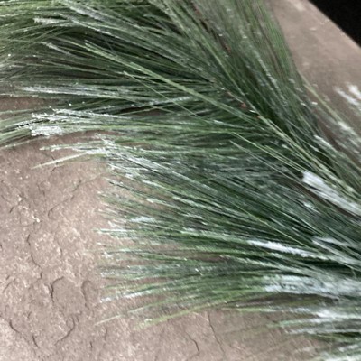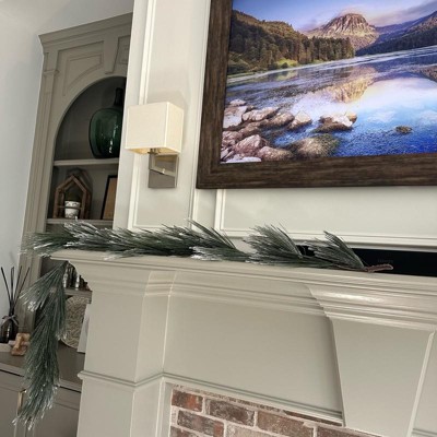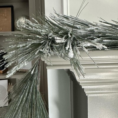 [This review was collected as part of a promotion.] The Shimmer long needle faux garland by Threshold is absolutely beautiful on my mantle but I do need to order two more of them for a total of three to really spice up my mantle and make it full. Note - our mantle is oversized. The snowy addition to the garland is beautiful and I will give this garland an amazing review because typically snowy garland makes a huge mess, but not this one!