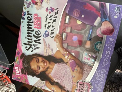[This review was collected as part of a promotion.] I love the idea of promoting creativity through this Cool Maker, Shimmer Me Body Art with Roller, 4 Metallic Foils and 180 Designs, Temporary Tattoo! My kids are all boys and they like using it, endless afternoons of making some wicked art!