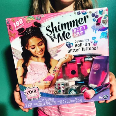 Shimmer Me Body Art Kit by Cool Maker—135 Temporary Tattoos, 3 Metallic Foil Cartridges, Jewels, Roller, Double-Sided Stickers—DIY Girls' Craft Kit