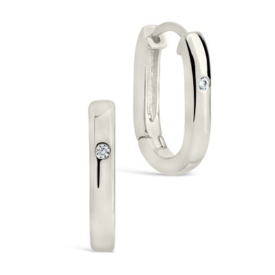 Features: 0.7" hoop, 0.12" width, 1mm CZ stones, Lead & Nickel free, hinged friction latch.