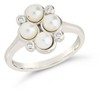 You'll feel like a princess when you wear this cluster of pearls and CZ stones! This ring is the perfect way to add shine to any look. Available in gold and silver tones.  Materials: 14K gold rhodium plated brass, cubic zirconia, faux pearls Features: 2mm band, 0.5" max width, Lead & Nickel free