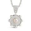 Dainty yet regal, this pendant is sure to please. This necklace is perfect for anyone who wants to add sparkling CZ stones and elegant pearl to their look. Available in gold and silver tones. Adjustable in length.Â