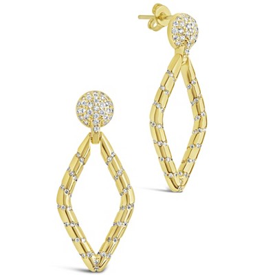 Turn heads with this striking, glamorous pair! You'll feel like a starlet in these open diamond-shaped drop studs with gleaming CZ stones. Available in gold and silver tones.