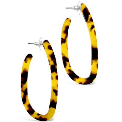 Show off your style by going out in these bright, colorful, eye-catching open oval resin hoops! Each one is made from sturdy resin, and they're available in water lily, tortoise, confetti and mermaid tones. Which one will you try on first?