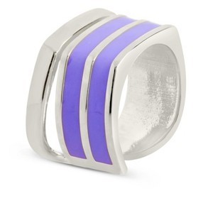 Love bold statement pieces and bright purple? This chunky ring is perfect for you! It features layers of bright purple enamel and is available in gold and silver metal tones. Perfect for layering, mixing, and matching.  Materials: 14K gold rhodium plated brass, enamel Features: 0.5" width, Lead & Nickel free