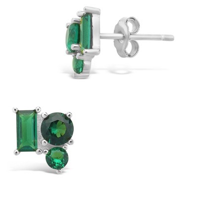 These delicate, dazzling cluster studs are sure to become your new faves! Featuring a pair of circular studs and one rectangular stud, this cluster comes in gold and silver metals and sapphire, emerald, and clear stones.