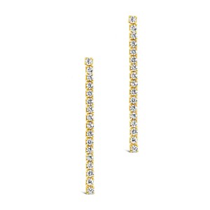 Dazzle in these drops! These elegant earrings are sure to sparkle all night long, thanks to the row of shimmering CZ stones on each one. Available in gold and silver tones.