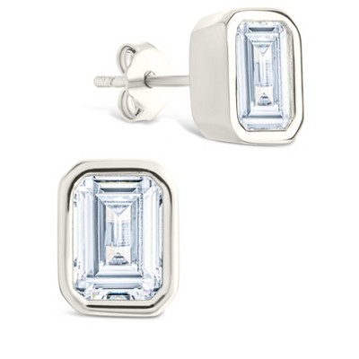 SHINE by Sterling Forever Sterling Silver Emerald Cut Bezel Set Stud Earrings