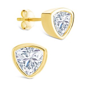 Product Name: SHINE by Sterling Forever Sterling Silver Trillion Cut Bezel Set Stud Earrings - Gold