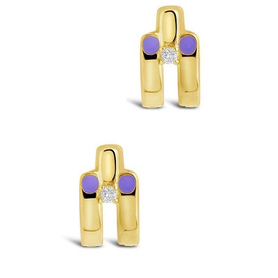 A fun pop of color and a little sparkle will add something special to any look! Finish off your look with these huggie hoops that feature blue enamel and clear CZ stones. Available in gold and silver tones.