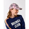 Say hello to your new style BFF—the Cher Ball Cap. Featuring a soft pink plaid design with navy and green accents, this cap brings a retro-chic twist to your everyday look. The structured fit and curved brim add just the right touch of casual polish. Whether you're brunch-bound or running errands, this cap is a playful nod to classic cool.