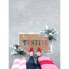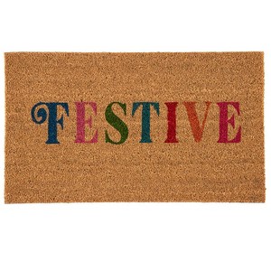 Update your holiday décor with Shiraleah’s “Festive” doormat. This charming doormat features a natural background with screen printed text, “Festive”, in a block, colorful font. Measuring 30” x 18”, and made from coir with vinyl backing, this doormat is the perfect way to add a little festive charm to your exterior.