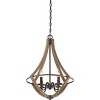 Traditional warmth meets industrial minimalism in the Shire collection. The distressed edges of the faux wood frame complement the rustic black finish of the inner rings. Curved arms and candelabra bulbs add classic charm to the chic simplicity of the drop silhouette. Choose from semi-flush mount or chandelier options and install this piece anywhere you want to maximize ambience. The large, multi-tiered chandeliers create a stunning focal point for dining or living room spaces.