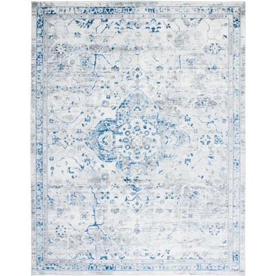 Elevate your living space with our exquisite area rug, sized at 8' X 10' for ample coverage and a prominent presence in any room. This large rectangle rug, with a comfortable pile height of 3/8", boasts a luxurious ivory and blue color palette that encapsulates both timeless elegance and modern versatility.