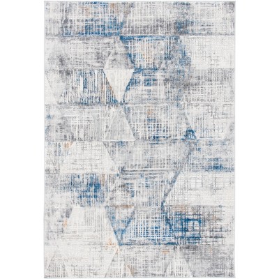 Elevate your living space with the sophisticated charm of this Transitional Light Grey / Blue area rug, measuring a versatile 5 feet 1 inch by 7 feet 6 inches. The medium rectangle shape boasts a comfortable height of 3/8 inches, ideal for underfoot luxury without being obtrusive.