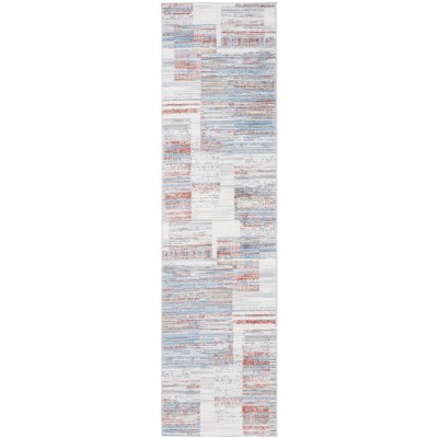 Made from high-quality polypropylene, this rug is not only stain-resistant but also easy to care for, making it an ideal choice for busy households. The visually engaging pattern, characterized by abstract linear brushstrokes in a harmonious blend of ivory, rust, and subtle blue tones, provides both a modern edge and a warm, inviting palette that complements a wide range of decors.