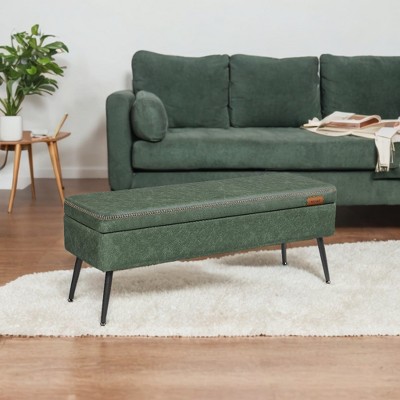 Introducing our Mid - Century Modern Collection Shoe Bench, a perfect blend of style and functionality. This bench is designed to be a focal point in your entryway. The synthetic leather upholstery, adorned with meticulous stitching, not only exudes a luxurious feel but also ensures durability for long - term use.The bench doubles as a storage unit and a shoe rack. It provides a convenient seating area where you can comfortably put on or take off your shoes. Inside, there's ample space to store away shoes, keeping your entryway clutter - free. The mid - century modern design elements, from the shape to the choice of materials, add a touch of sophistication to any home decor. Whether your home follows a minimalist, contemporary, or traditional style, this bench will seamlessly integrate, enhancing the overall aesthetic while serving its practical purposes.Product Dimensions:11.8"D x 31.5"W x 19.7"H.Maximum Weight Recommendation:300 Pounds.Item Weight:13.86 pounds.Seating Capacity:2.0.