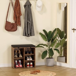 Shoe Bench with Cushion, Storage Bench with Adjustable Shelves