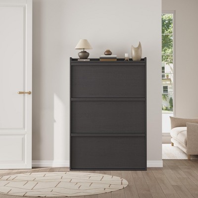 Shoe Cabinet Narrow, Rattan Shoe Storage with 4 Flip Doors for 20-22 Pairs, Adjustable Shelves, Metal Feet, 100x24x88cm Entryway Organizer for Hallway